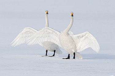 Whooper Swan (Cygnus cygnus) in winter surronding.